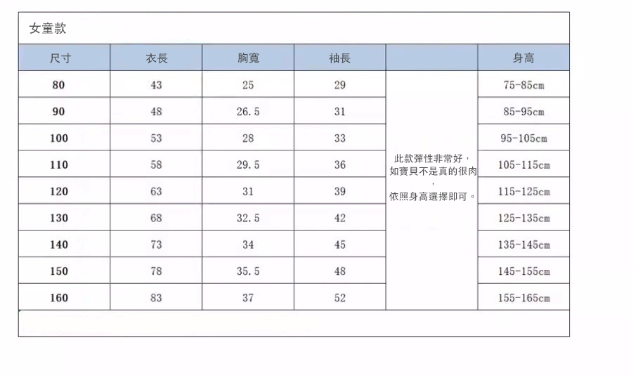 女童款 80-150