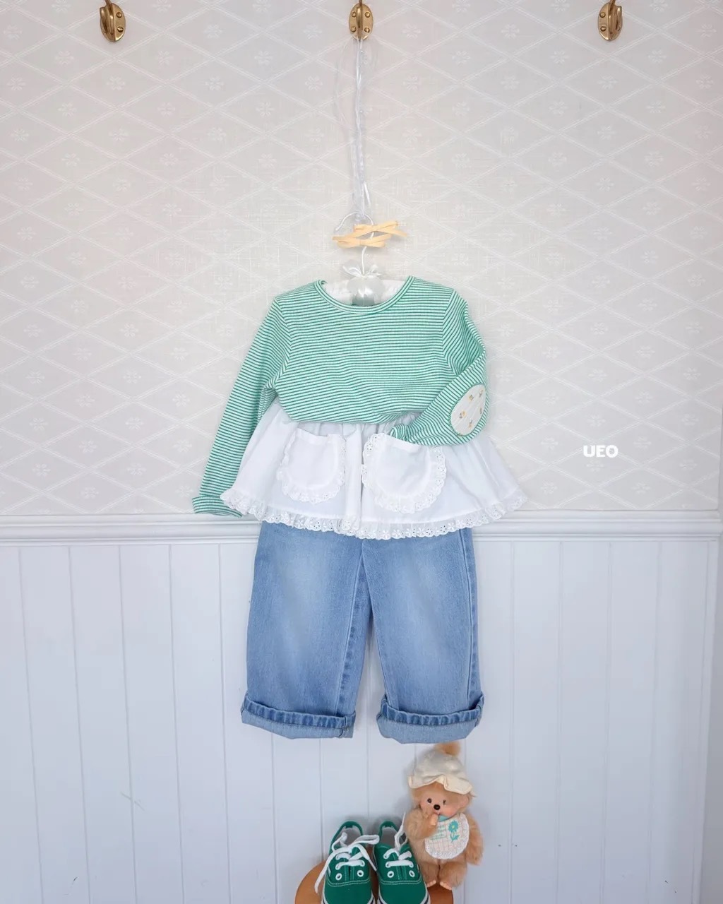 UEO 可愛補丁條紋 tee / 3色